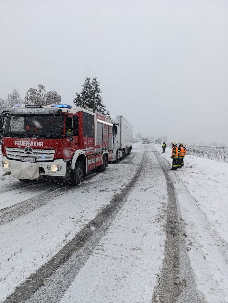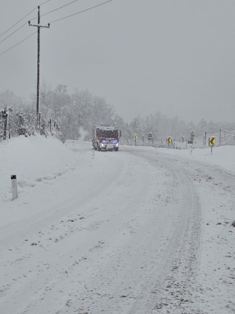 Heute wurden wir zu mehreren Einsätzen alarmiert, die durch den starken Schneefall verursacht wurden. Auf der B54 mussten wir mehreren LKWs und PKWs Hilfeleistung geben, das sie aufgrund mangelnder Winterausrüstung ihre Fahrt nicht fortsetzten konnten. Hinzu kamen ein Verkehrsunfall sowie ein Baum über Straße.